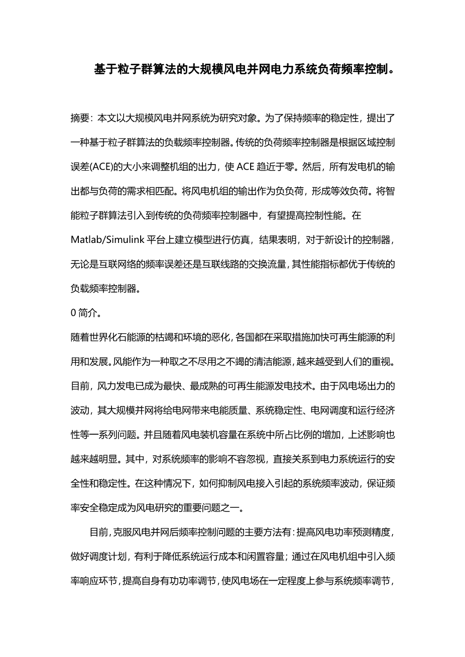 Load frequency control of power systems with large scale of wind power integrated based on particle swarm algorithm