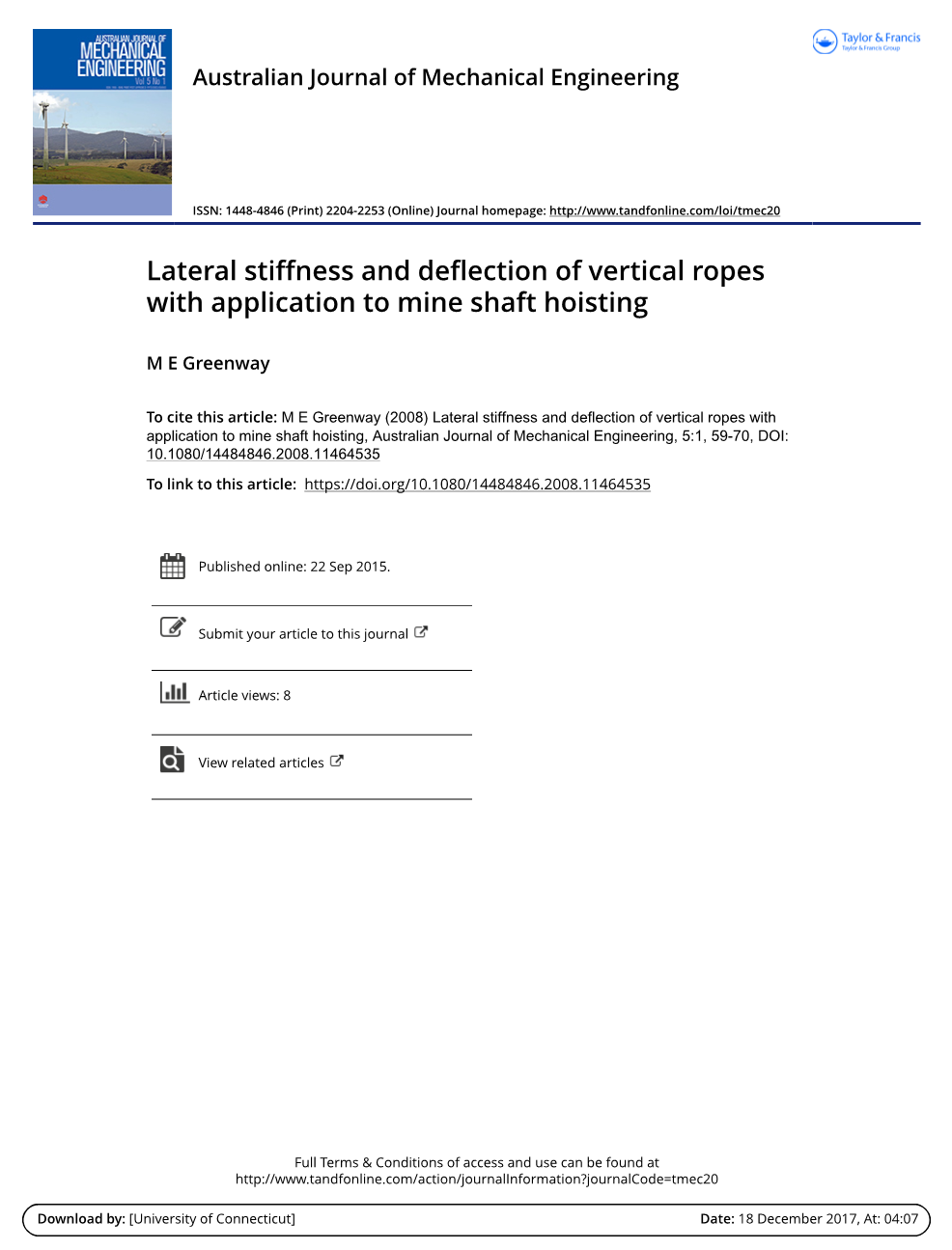 垂直钢丝绳的横向刚度和挠度在矿井提升中的应用外文翻译资料