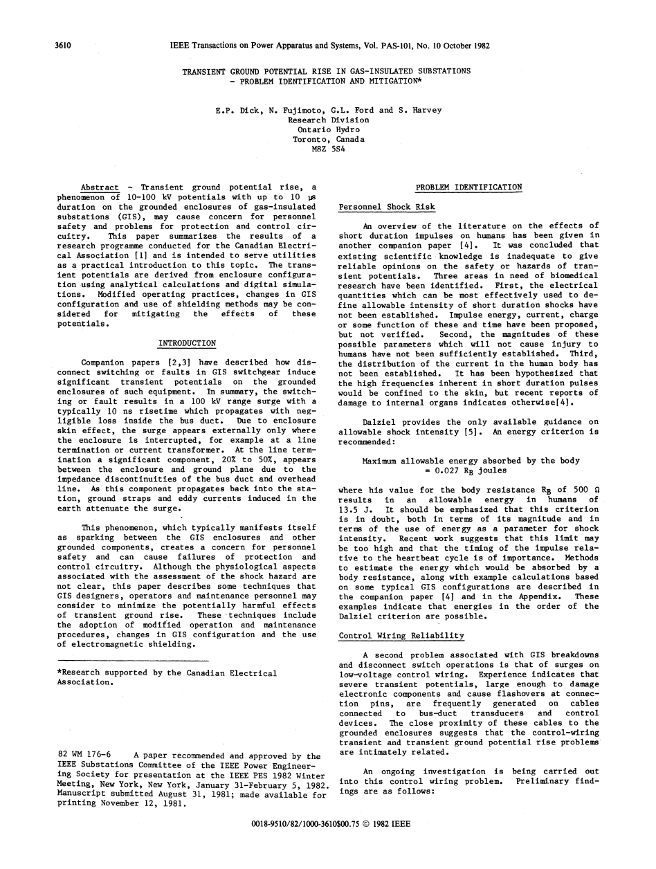 *该研究的到加拿大电气协会的支持。82 WM 176-6。本文被IEEE电力工程协会中的IEEE变电委员会审核通过并作为演示文稿在IEEE PES1982年冬季会议上展示,该会议于1982年1月31到2月5号,在纽约举行。