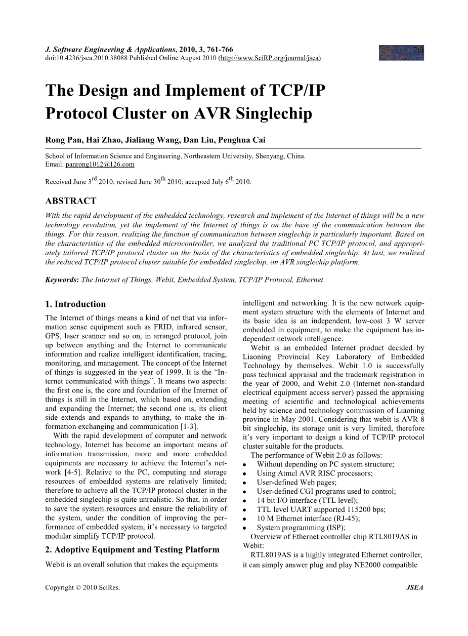 关键词: 物联网,Webit,互联网的嵌入式系统,TCP/ IP协议,以太网