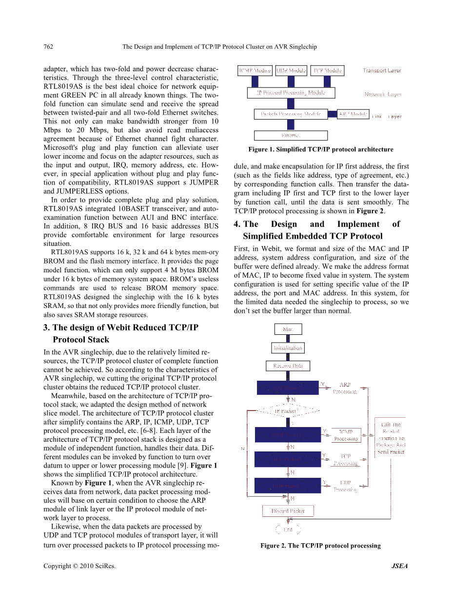 与此同时,基于TCP / IP协议栈的体系结构,我们适应网络的设计方法片模型。TCP / IP协议的架构集群简化后包含了ARP、IP、ICMP TCP,UDP协议处理模型,等等(6 - 8)。每一层的TCP / IP协议栈的体系结构是作为一个设计的独立功能的模块,处理他们的数据。不同的模块可以通过函数将被调用基准面上或下处理模块[9]。图1显示了简化TCP / IP协议的体系结构。的图1中,当AVR单片机接收到的数据网络,数据包处理模块将在一定条件下选择ARP基地模块的链路层或IP协议模块的网络层的过程。