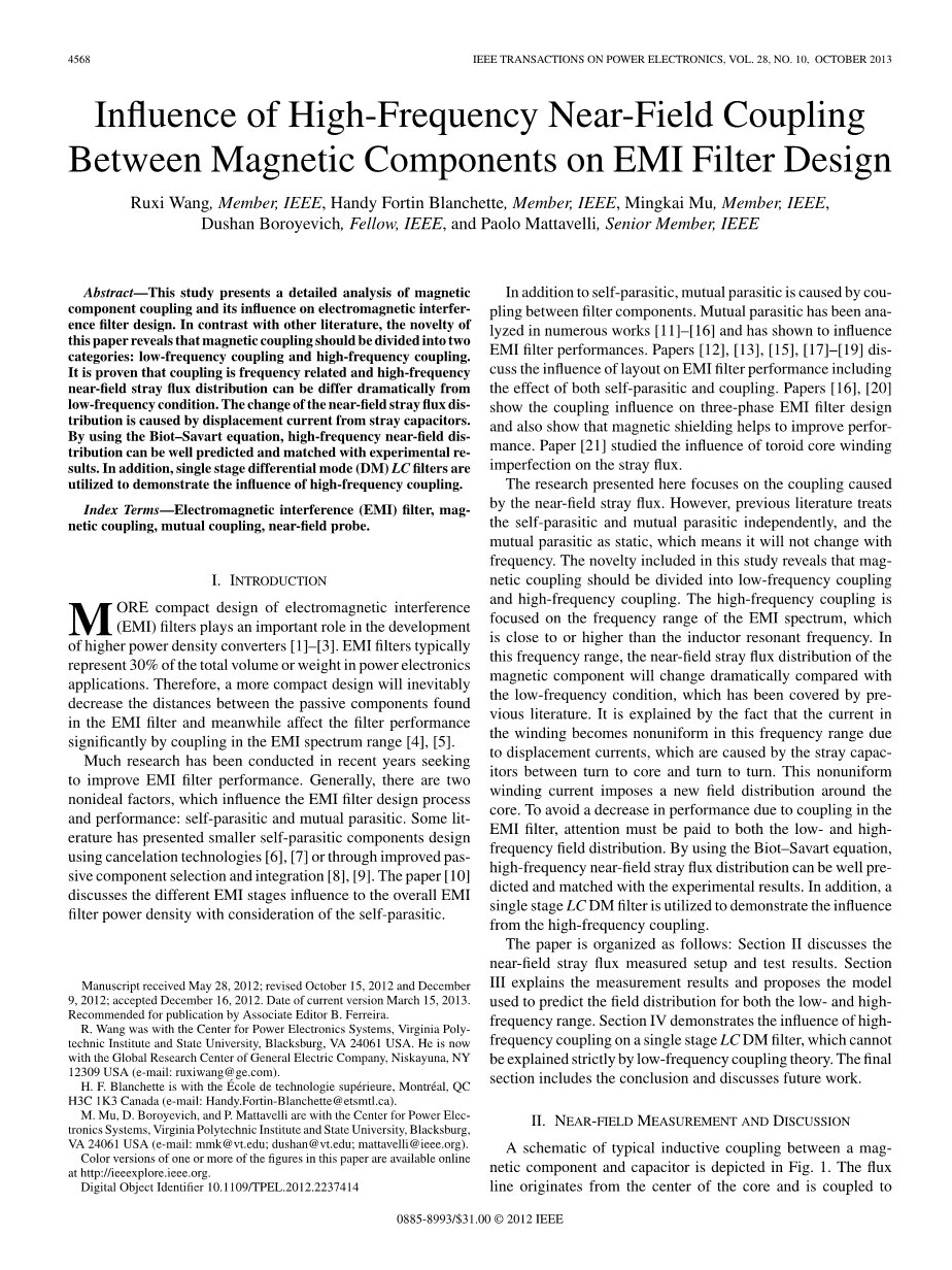 关键字-电磁干扰(EMI)滤波器,磁耦合,相互耦合,近场探头。