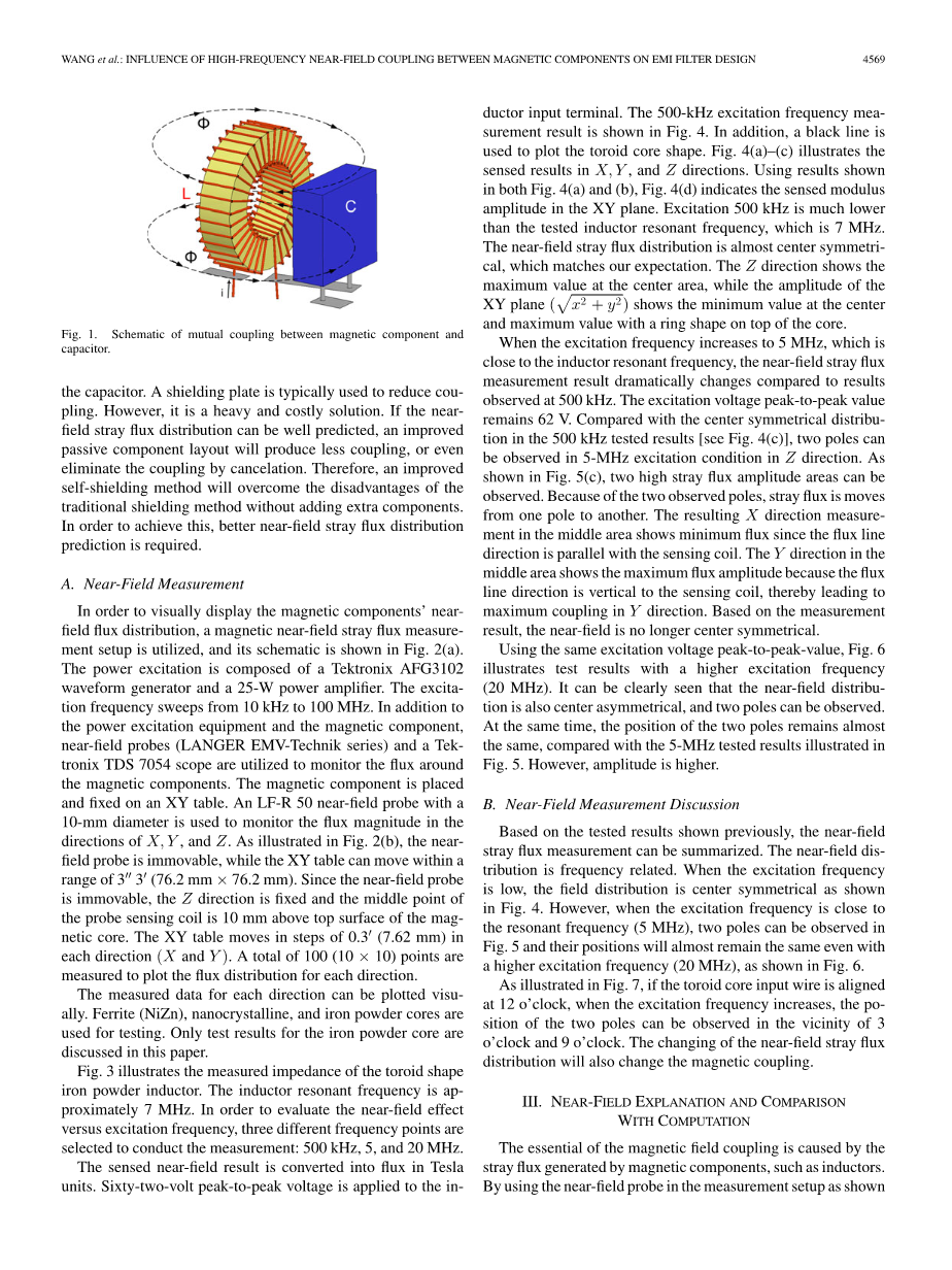 本文的结构如下:第二部分讨论了近场杂散磁通测量设置和测试结果。第三部分解释了测量结果,提出了用该模型预测低频和高频范围下的场分布。第四部分展示了高频率耦合在LCDM滤波器设计过程中的影响,这个不能用低频耦合理论来解释。最后一部分关于得出的结论和讨论未来的工作。