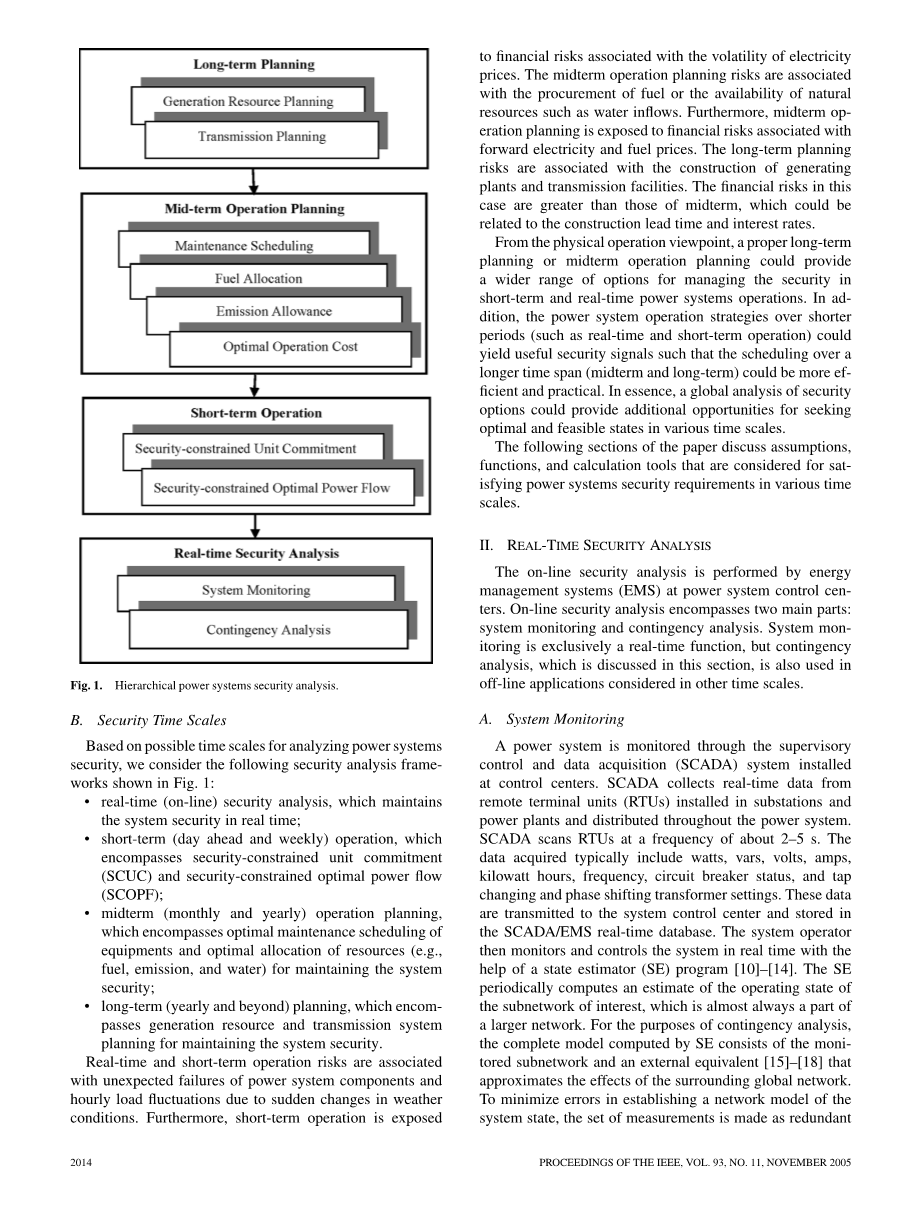 本文回顾了安全分析在公用事业的地位,并讨论了系统的安全性对经营的影响和电力系统规划的调整。本文主演研究电力系统的静态安全而非动态安全。本文还讨论了满足电力系统安全性要求的一些假设,函数和计算方法。此外,还提出了基于时间调度的安全协调模型。特别的,对实时的安全分析,短短期运行,中期运行计划和长远规划进行了分析。本文强调为实现电力市场的安全的问题和挑战,并得出结论认为,安全选项全局分析可以为寻求在不同时间尺度的最佳可行的时间表提供更多的机会。