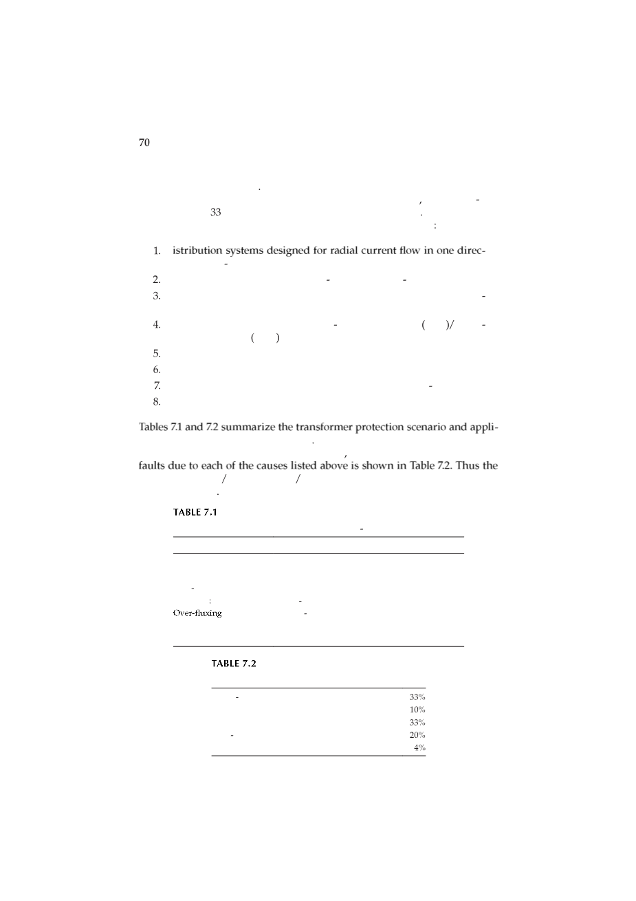 表7.1和7.2总结了变压器保护情况和各种保护方案的应用。