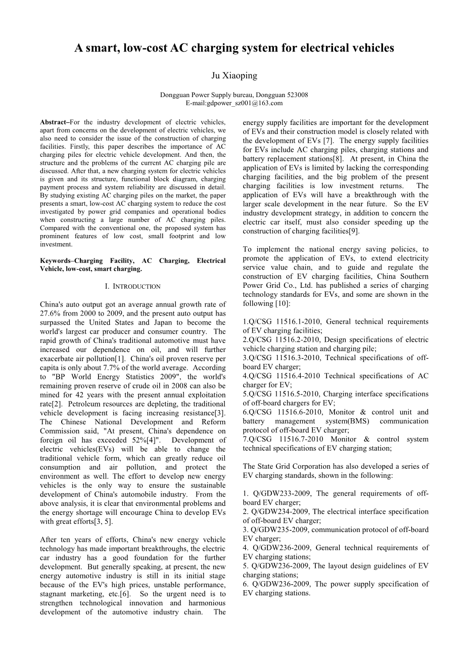 为了满足当前充电市场的上述要求,本论文提出了一种智能,低成本的电动汽车交流充电系统。