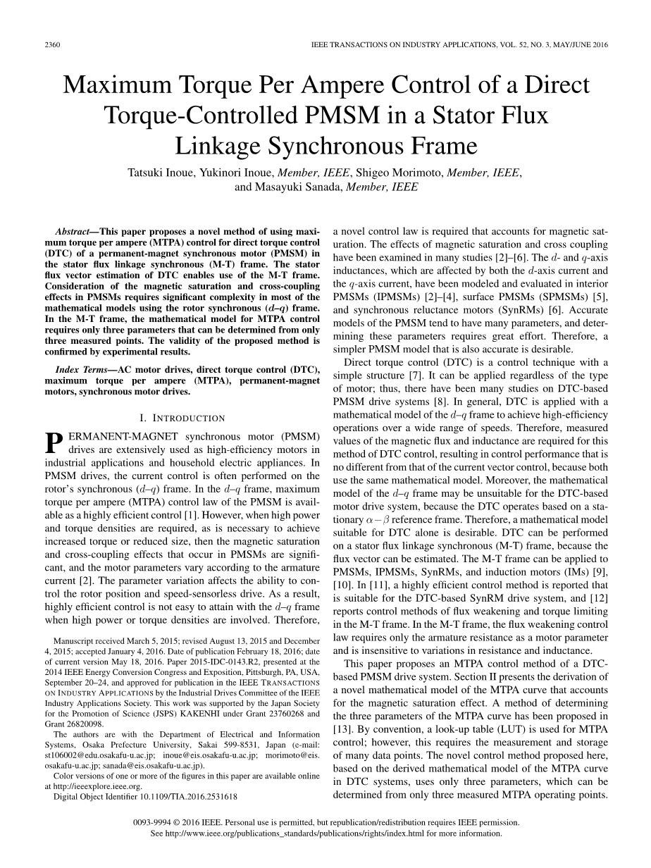 Tatsuki Inoue, Yukinori Inoue, Member, IEEE, Shigeo Morimoto, Member, IEEE,and Masayuki Sanada, Member, IEEE
