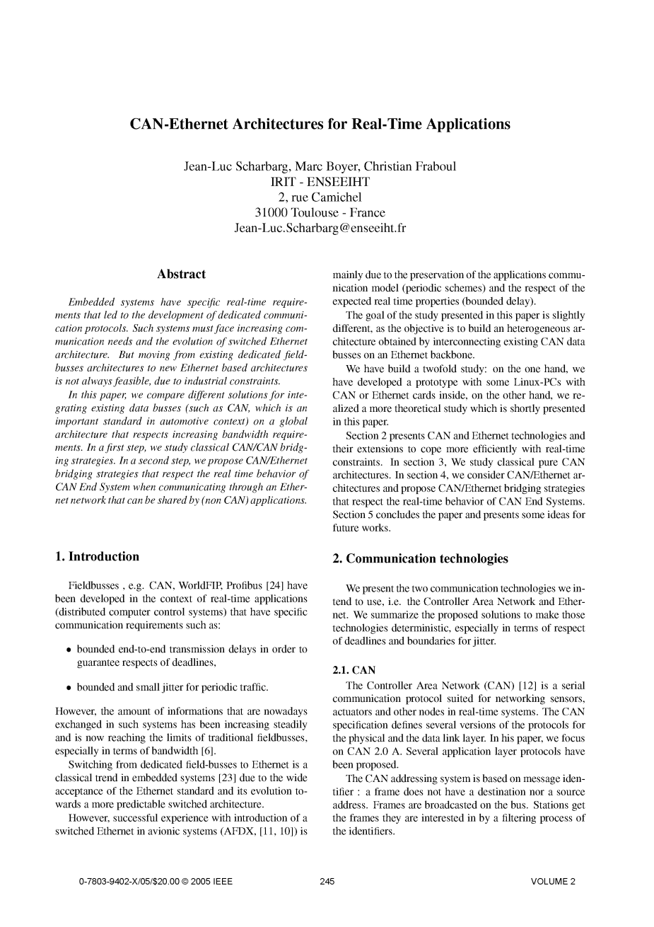 我们已经建立了双重研究:一方面,我们已经开发了一些带有CAN或以太网卡的Linux-PC的原型,另一方面,我们确定了一个更多的理论研究,这篇文章很快在本文中提出。