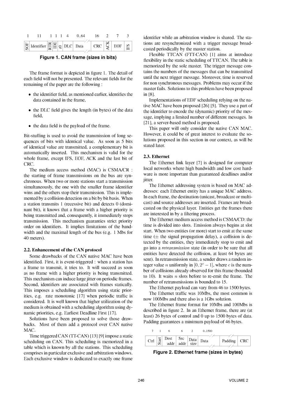 已经确定了CAN本地MAC的一些缺点。 首先,它是事件触发的:当一个站有一个帧要传输,它试图。 一旦没有具有较高优先级的帧被发送,它将成功。 这种机制可以在周期帧上引起大的抖动。其次,标识符与静态帧相关联。 这强加了使用静态优先级的调度算法,例如 当使用动态优先级的调度算法来获得周期性业务为中等时速率单调[17]。 最早期限[17]。