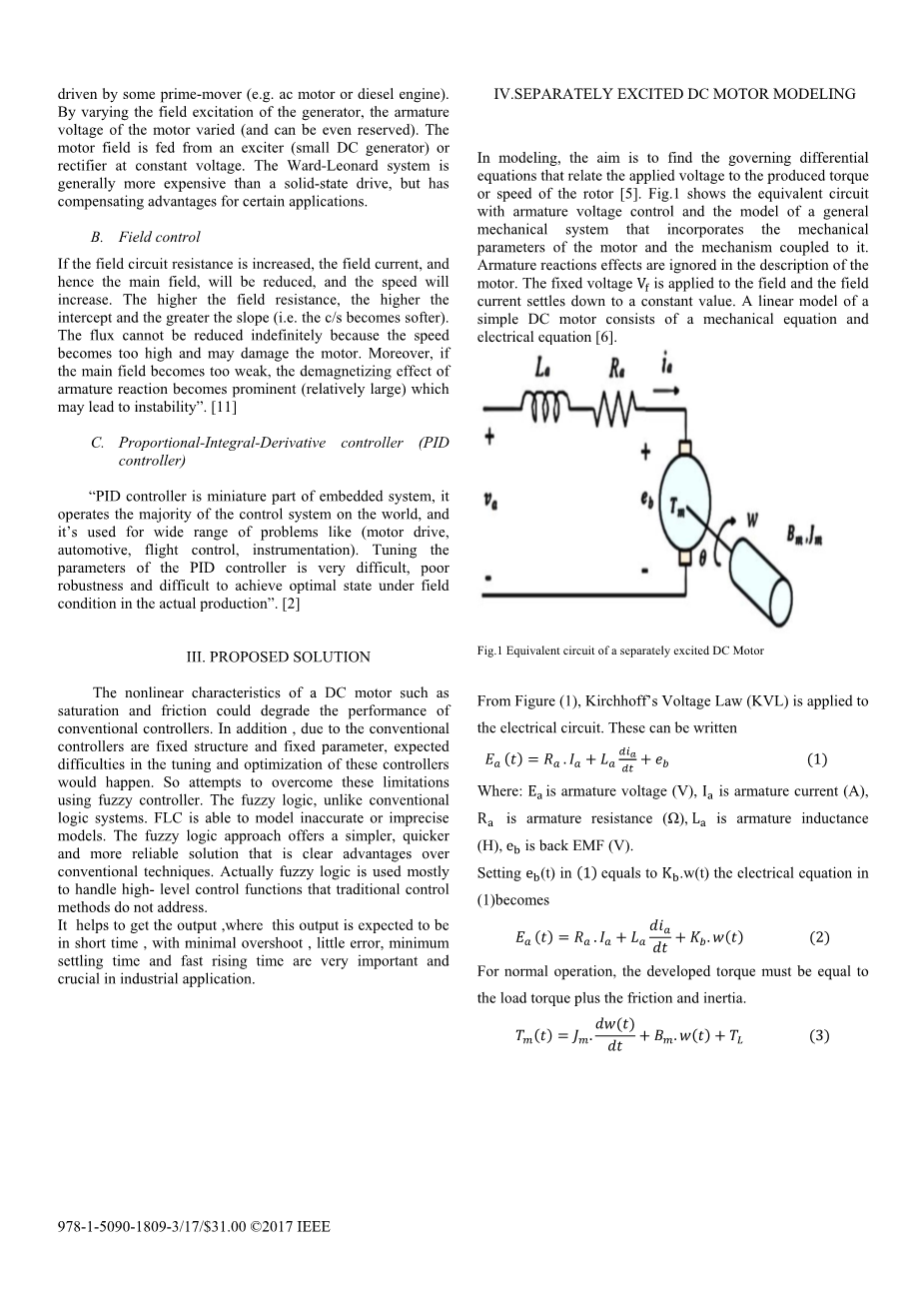 使用模糊逻辑控制器的直流电机速度控制外文翻译资料