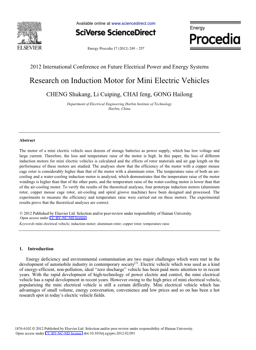 关键词:微型电动车;感应电机;铝转子;铜转子;温升