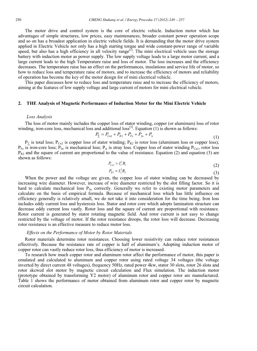微型电动车的电动机采用几十个蓄电池作为电源,具有低电压、大电流。因此,本文对电动机的损耗和温升问题进行了研究,计算了小型电动汽车用不同感应电动机的损耗,研究了转子材料和气隙长度对电机性能的影响。分析表明,与铜鼠笼转子的电机的效率是大大的高于铝转子电机。两个空冷和水冷感应电机进行了温度的升高,说明电机绕组温升高于其他部分,和水冷电机温升低于空气冷却电机。为了验证理论分析的结果,设计并加工了四台样机(铝转子、铜鼠笼转子、风冷、螺旋槽机)。在这些电机上进行了测量效率和温度升高的实验。实验结果证明了理论分析的正确性。