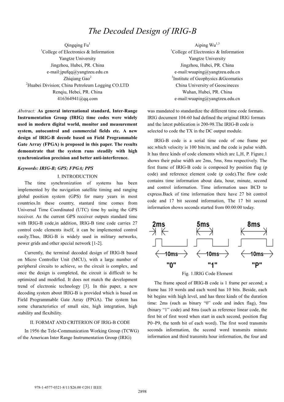 关键词:IRIG-B码;时间同步;秒脉冲;解码
