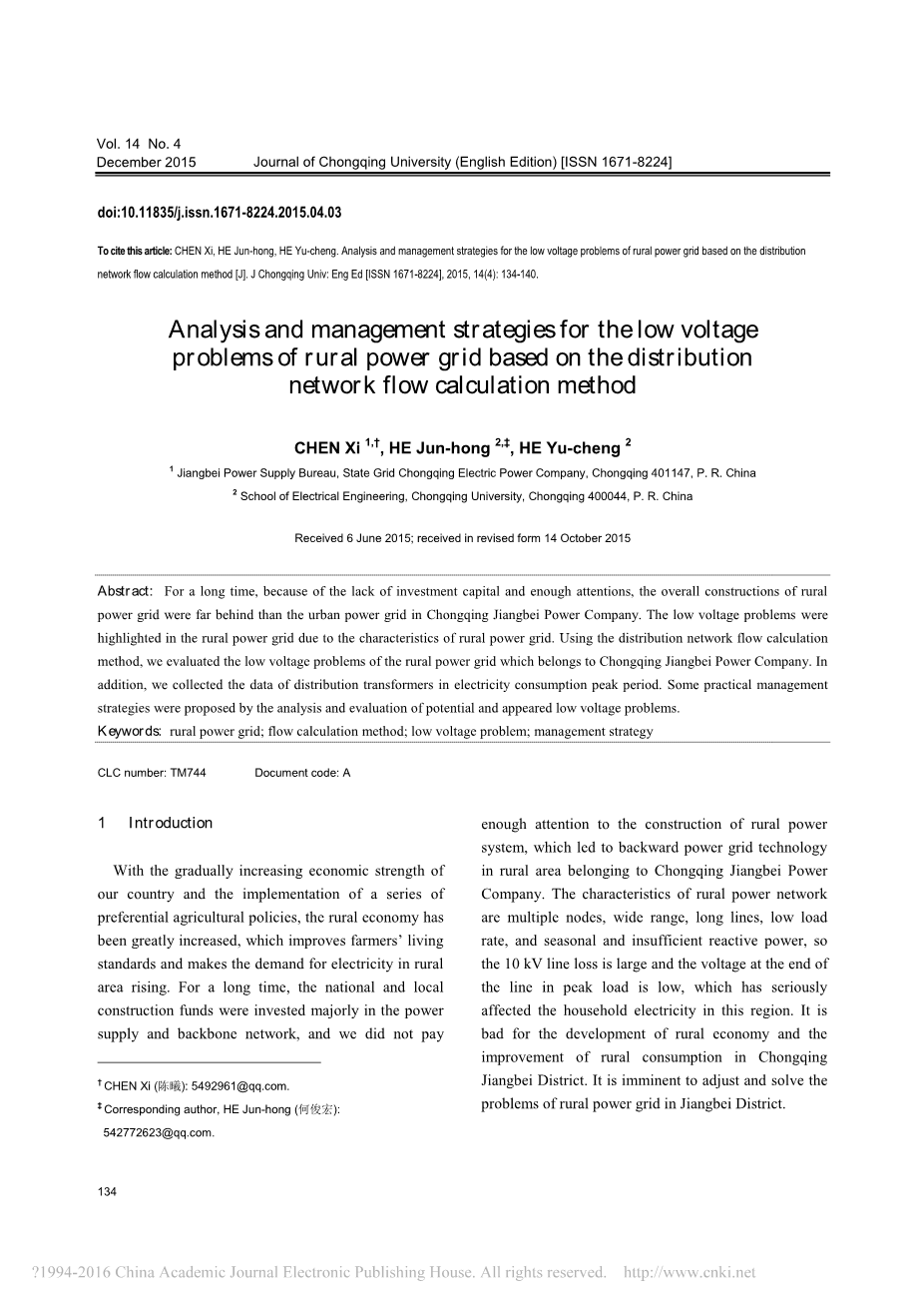 译文标题 基于配电网潮流计算的农村电网低压问题分析及管理对策
