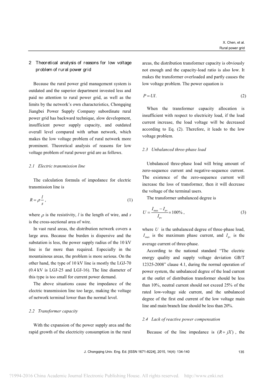 由于农村电网管理体制陈旧,上级部门投入少,对农村电网的关注也越来越少,同时受网络自身特点的限制,重庆市江北供电公司下属的农村电网具有落后的技术、缓慢的发展、供电能力不足、和城市网络相比落后的整体水平,使得农村电网的低电压问题更加突出。农村电网低电压问题的理论分析。