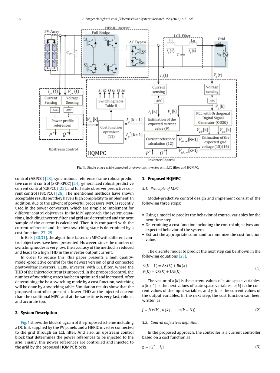 图1显示了所提出方案的框图,该方案包括由光伏电池板 提供的DC链路和通过LCL滤波器连接到电网的HERIC逆变器。并且,上游控制块确定要注入电网的功率参考。最后,此功率参考由建议的HQMPC模块控制并注入到电网中。