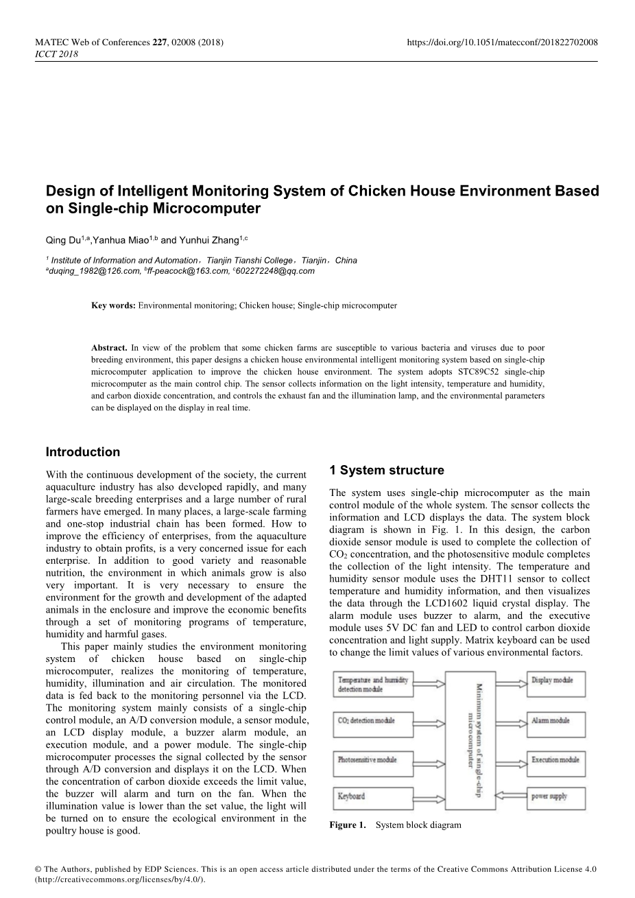 基于单片机的鸡舍环境智能监控系统设计外文翻译资料 2023-02-27 10:13:21 英语原文共 10 页,剩余内容已隐藏,支付完成后下载完整资料 资料编号:[410343],资料为PDF文档或Word文档,PDF文档可免费转换为Word 原文和译文剩余内容已隐藏,您需要先支付 30元 才能查看原文和译文全部内容!立即支付 发小红书推广免费获取该资料资格。点击链接进入获取推广文案即可: Ai一键组稿 | 降AI率 | 降重复率 | 论文一键排版 PREVIOUS NEXT 您可能感兴趣的文章 精益和自动化生产及物流外文翻译资料 精益自动化生产和物流外文翻译资料 精益化和自动化的制造和物流外文翻译资料 精益自动化的制造和物流外文翻译资料 生产与物流的精益化和自动化外文翻译资料 无刷直流电机闭环速度控制原型设计与实现方法外文翻译资料 无线HART网络控制外文翻译资料 基于单片机的智能鱼缸的设计外文翻译资料 基于单片机的盆花自动浇水控制系统设计外文翻译资料 基于PLC的空气循环净化系统外文翻译资料