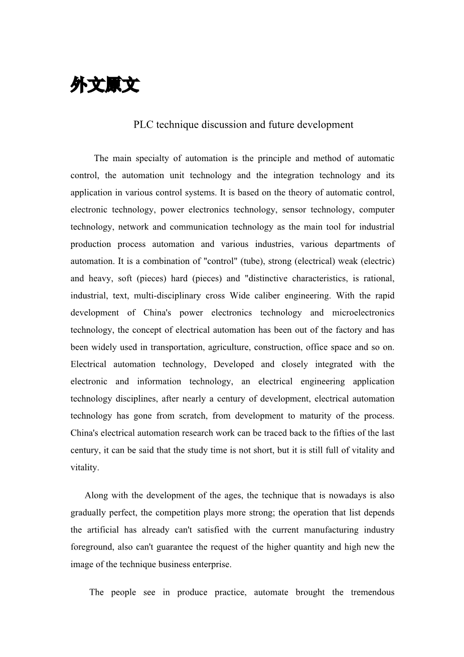 The main specialty of automation is the principle and method of automatic control, the automation unit technology and the integration technology and its application in various control systems. It is based on the theory of automatic control, electronic technology, power electronics technology, sensor technology, computer technology, network and communication technology as the main tool for industrial production process automation and various industries, various departments of automation. It is a combination of 'control' (tube), strong (electrical) weak (electric) and heavy, soft (pieces) hard (pieces) and 'distinctive characteristics, is rational, industrial, text, multi-disciplinary cross Wide caliber engineering. With the rapid development of Chinas power electronics technology and microelectronics technology, the concept of electrical automation has been out of the factory and has been widely used in transportation, agriculture, construction, office space and so on. Electrical automation technology, Developed and closely integrated with the electronic and information technology, an electrical engineering application technology disciplines, after nearly a century of development, electrical automation technology has gone from scratch, from development to maturity of the process. Chinas electrical automation research work can be traced back to the fifties of the last century, it can be said that the study time is not short, but it is still full of vitality and vitality.