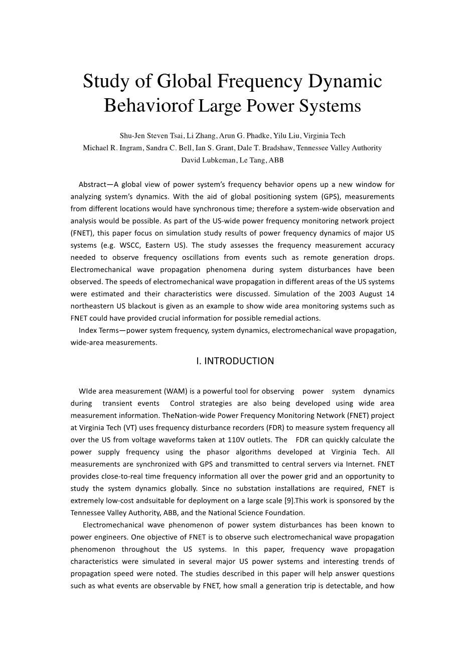 Shu-Jen Steven Tsai, Li Zhang, Arun G. Phadke, Yilu Liu, Virginia Tech