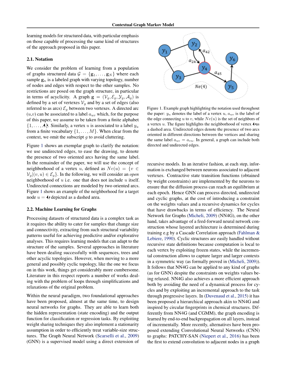我们考虑从一组图数据中学习结构化数据其中,每个样本是一个标记图,其拓扑结构、节点数和边缘相对于其他样本不同。图结构没有任何限制,特别是在非循环方面。图由一组顶点和一组边(也称为弧)定义,例如在两个顶点之间。 有向弧(u,v)可以与标签相关联,为了本文的目的,我们假设它取自有限字母。 类似地,顶点u与来自有限词汇。的标签相关联。 从上下文中清除时,我们省略了下标g以避免混乱。