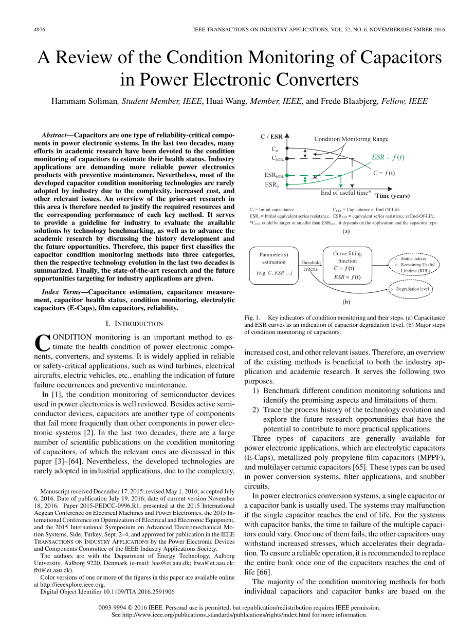 索引术语 - 电容估计,电容测量,电容器健康状态,状态监测,电解电容器(E-Caps),薄膜电容器,可靠性