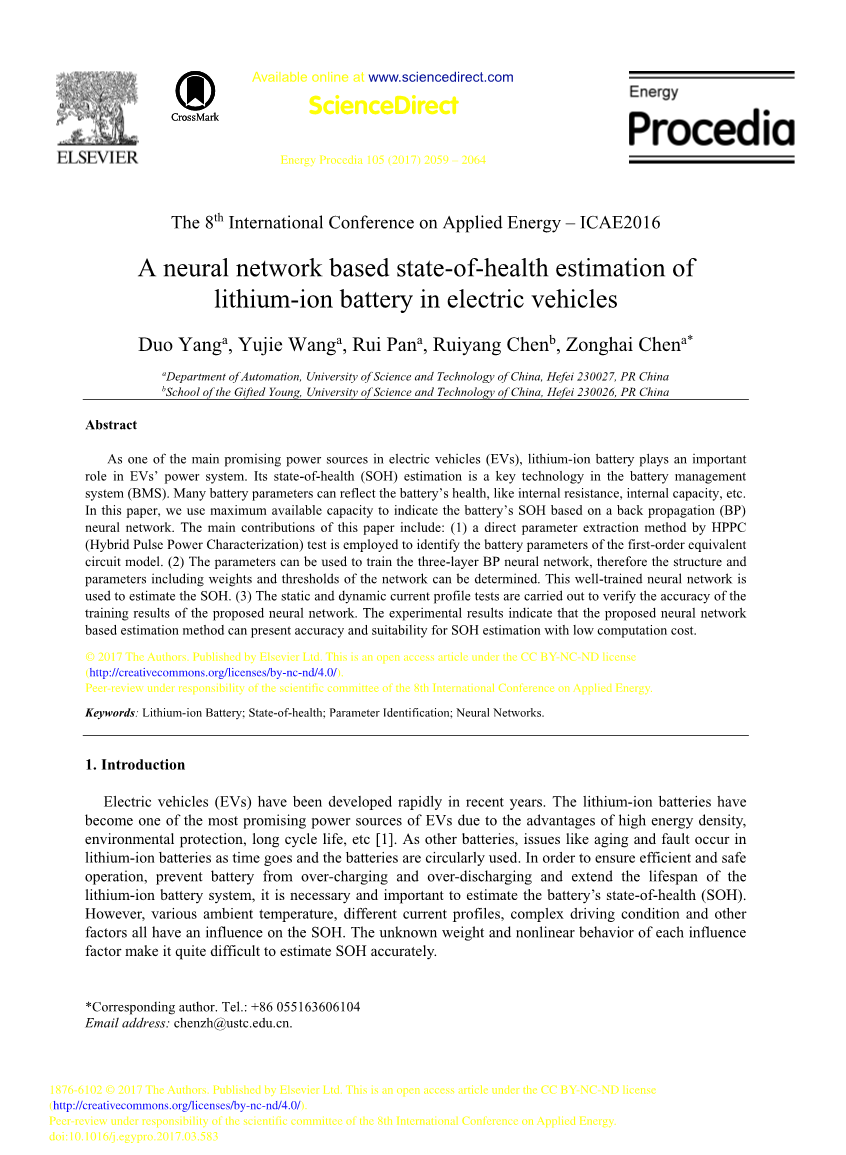 关键词:锂离子电池; 健康状况; 参数识别; 神经网络。