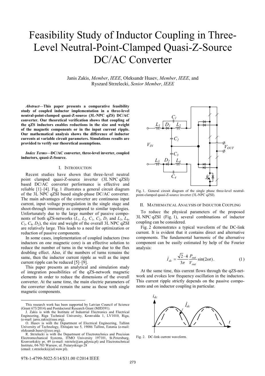 为了减少所提出来的建议物理参数3L-NPC-qZSI(图1),几种电感组合可以考虑耦合。图2给出了DC直流链路电流的典型波形。 我们可以看出,它包含直接和替代组件。通过傅立叶分析可以很容易地估算替代组件的基波谐波: