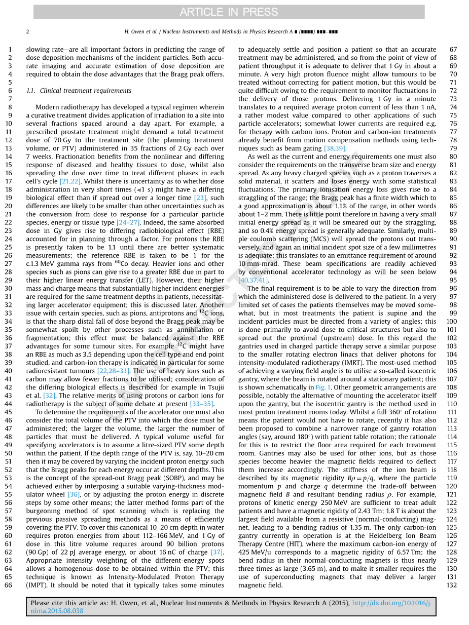 为了明确对加速器的要求,还必须考虑施药的计划靶区体积;体积越大,需要输送的粒子数量越多。一个有效的方法是假定患者体内有一定尺寸的计划靶区。如果计划靶区的深度范围在10-20厘米,则可以通过改变注入质子的能量来覆盖到它,使得不同能量的布拉格峰出现在不同的深度。这就是扩展布拉格峰(SOBP)的概念,可以通过插入一个合适的厚度可变的调制轮或通过其他手段离散地调节质子能量来实现这一技术。后者演变成了一种新型的点扫描法的一部分,正在逐步取代先前的被动扩散方法,成为新的有效覆盖计划靶区的手段。为了覆盖10-20厘米深的水,大约需要112-166MeV的质子能量,并且在一升体积的水中1Gy的剂量大约需要900亿个平均能量为22pJ的质子(90Gp),或大约16nC的充电电量。在不同的能量点适当增加强度可以使得计划靶区内得到均匀的剂量;这种技术被称为强度调制质子治疗(IMPT)。值得注意的是,这种技术通常需要几分钟来充分地放置和定位患者,以便进行精确的治疗。因此,从病人吞吐量的角度来看,应当在约一分钟内运输1Gy的剂量。非常高的质子通量允许在不校正病人身体运动的情况下治疗肿瘤,但由于需要监测这些质子的运输波动,这将是非常困难的。将在一分钟内运输1Gy剂量转换为要求平均质子电流小于1nA,这对于一个粒子加速器来说是一个非常适中的参数。如碳离子治疗,这些治疗手段只需要稍低的电流。使用诸如束流选通这样的技术进行运动补偿的方法已经对质子和碳离子疗法起到了推动的作用。