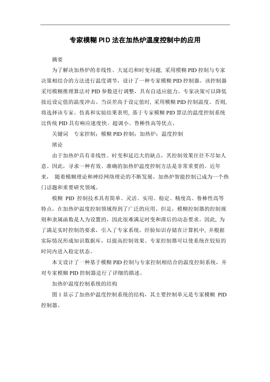 Fig.1 shows the structure of temperature control system for heating furnace, and its main control unit is an expert fuzzy PID controller.