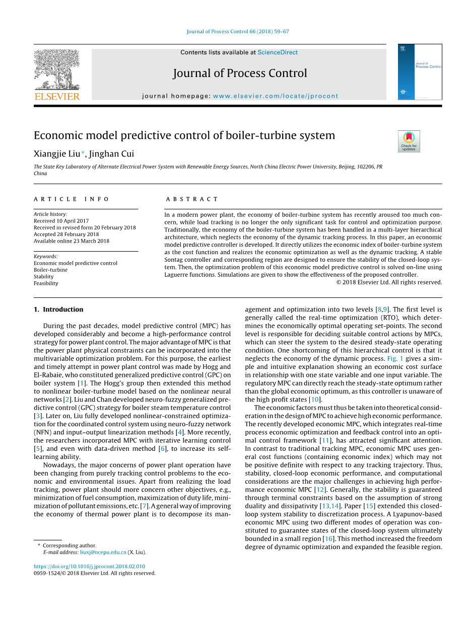 虽然这些努力已经很好地建立了经济MPC框架,但电厂控制任务还必须进一步解决三个关键问题:(i)由于锅炉-涡轮系统的强非线性,必须建立一个基于多线性模型的经济MPC,在该模型中可以明确地表达未来状态;(i i)一个为了提高锅炉-汽轮机系统的经济性,应采用适当的动态经济优化模式和保证稳定模式,(iii)基于多线性模型,设计一个基于李雅普诺夫的辅助控制器,将锅炉-汽轮机系统控制在稳定区内。
