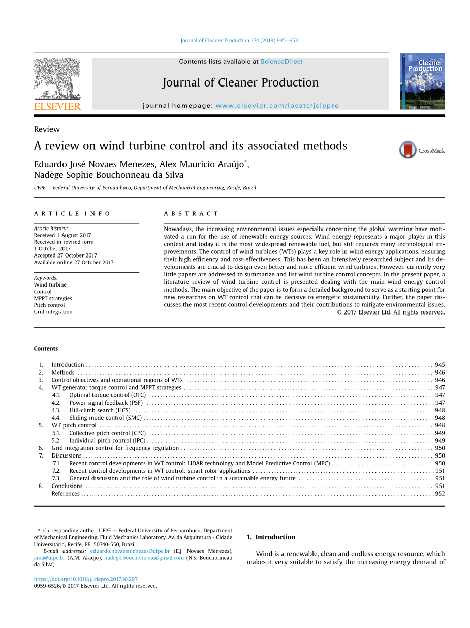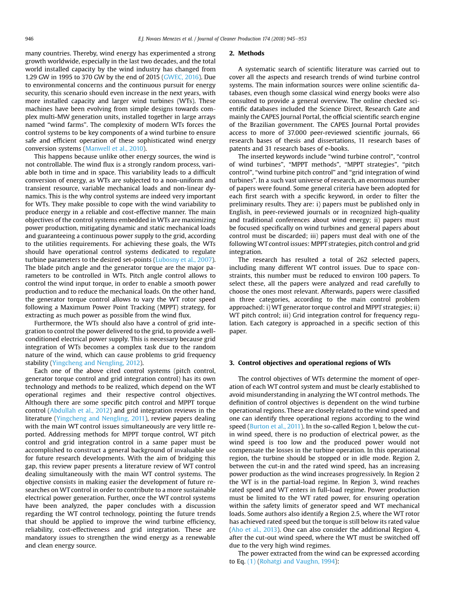 ii)论文必须专门针对风力涡轮机,必须摒弃关于控制的一般性论文;iii)论文必须处理以下WT控制问题之一:MPPT策略,变桨控制和网格集成。