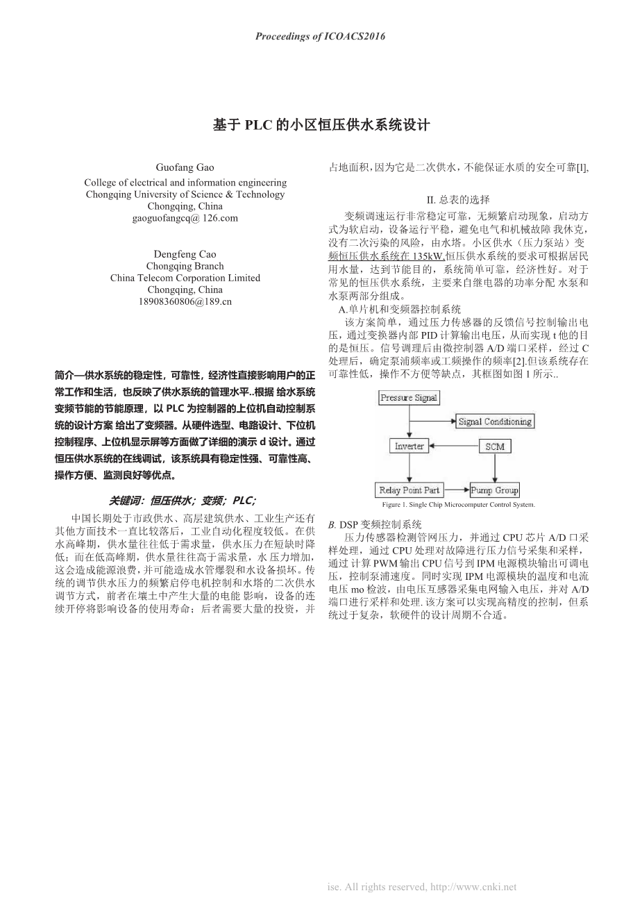 China has long been in the municipal water supply, high- rise building water supply, industrial production and other aspects of the technology has been relatively backward, industrial automation is low. In the peak period of water supply, water supply is often lower than demand, water pressure is reduced in short supply; and in the low peak period, water supply is often higher than the demand, water pressure increased, this will cause energy waste, and may cause the water pipe burst and water equipment damage. Traditional regulating water supply pressure of the frequent start stop motor control and water tower in secondary water supply regulation way, the former produces a lot of energy to power in the load impact, equipment continuous opening and stopping will influence on the service life of equipment; the latter needs a lot of investment and covers an area of, because it is a secondary water supply, can not guarantee the safety and reliability of the water quality[l],