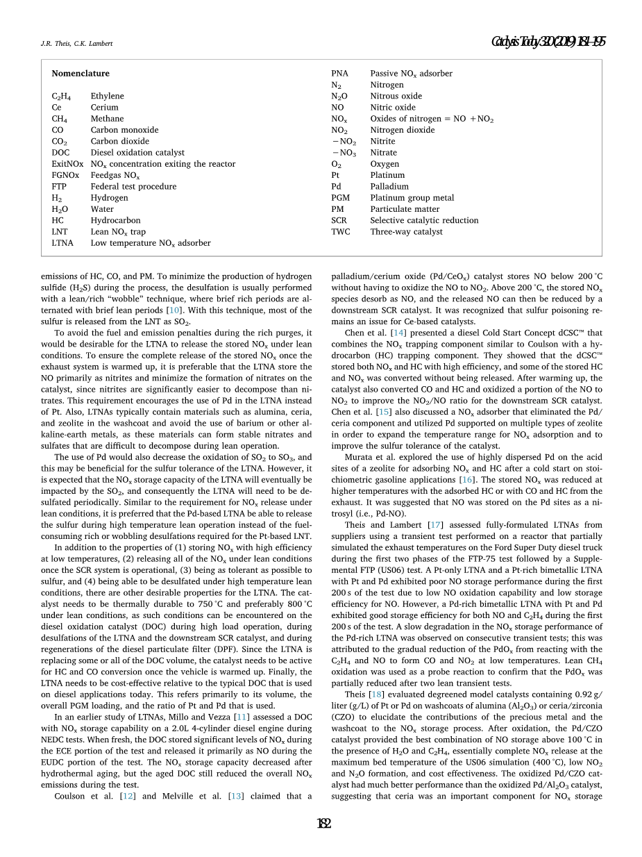 关键词 氮氧化物吸附器;钯;二氧化铈;乙烯;亚硝酸盐;硝酸盐;异氰酸酯