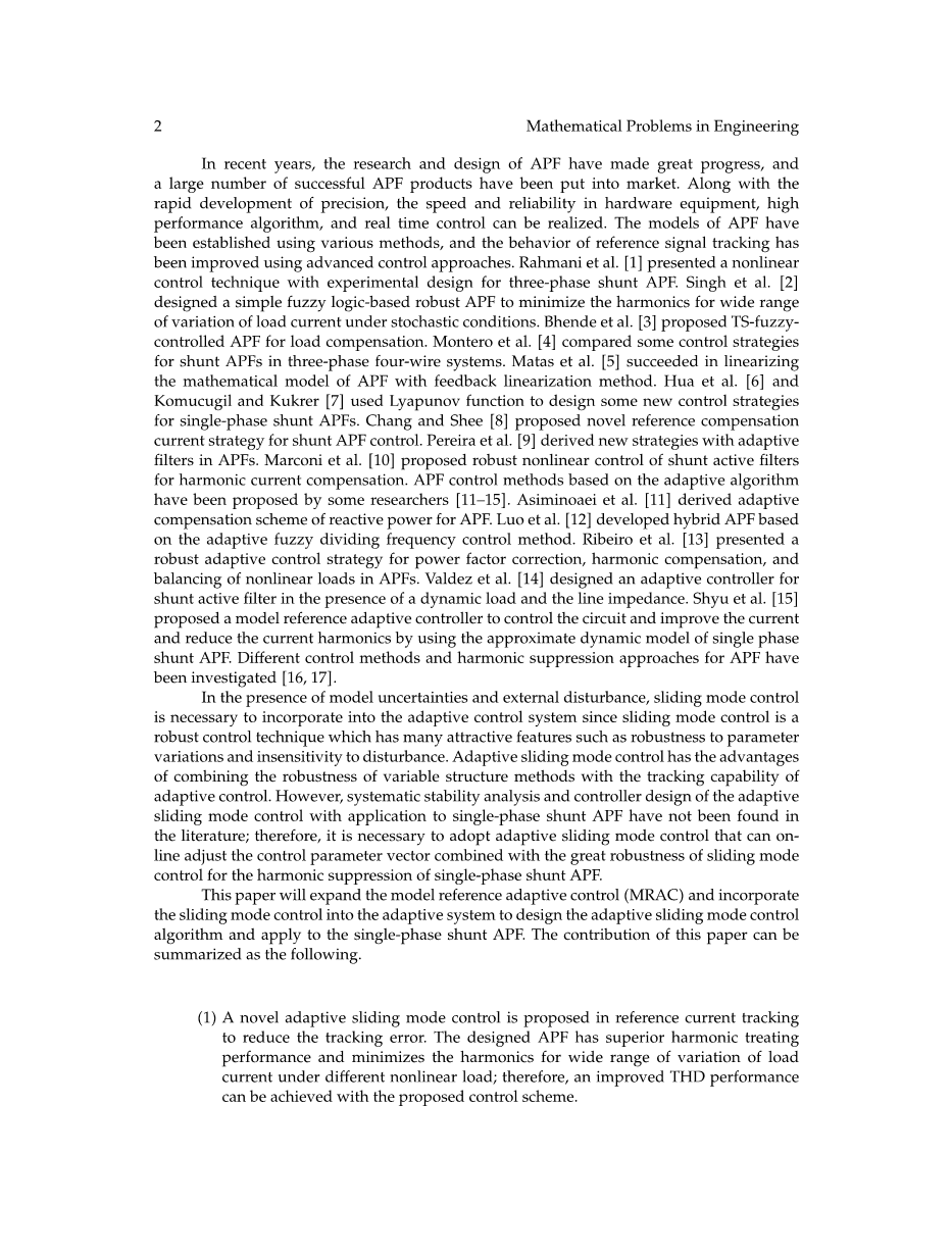 本文将扩展参考自适应控制的模型(MRAC),并将滑模控制纳入自适应系统当中,设计自适应滑模控制算法并应用于单相并联型APF。 本文的贡献可以概括如下。