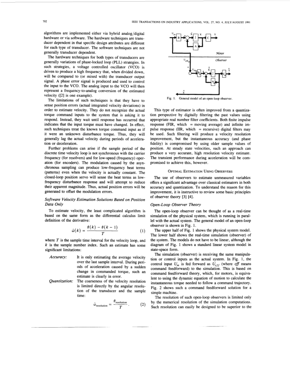 这种开环观测器的分辨率仅受仿真计算的数值分辨率的限制。这种分辨率可以很容易地设计为优于反馈装置。这种开环方法的局限性在于只有当观测器模型及其参数与实际物理系统相同时才是正确的。这种方法仍然有用,但可以通过在观测器上关闭循环来改进。