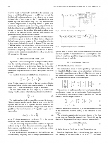 本文的结构如下:第二节给出了速度控制回路的结构,第三节介绍了本文采用的负载转矩观测器,并对观测器系数的选取进行了讨论,第四部分介绍了本文提出的预测方法,并与预测结果进行了仿真比较。在此基础上,给出了PI参数的频域计算方法,并在第六节给出了实验结果。最后,第七节对本文进行了总结。