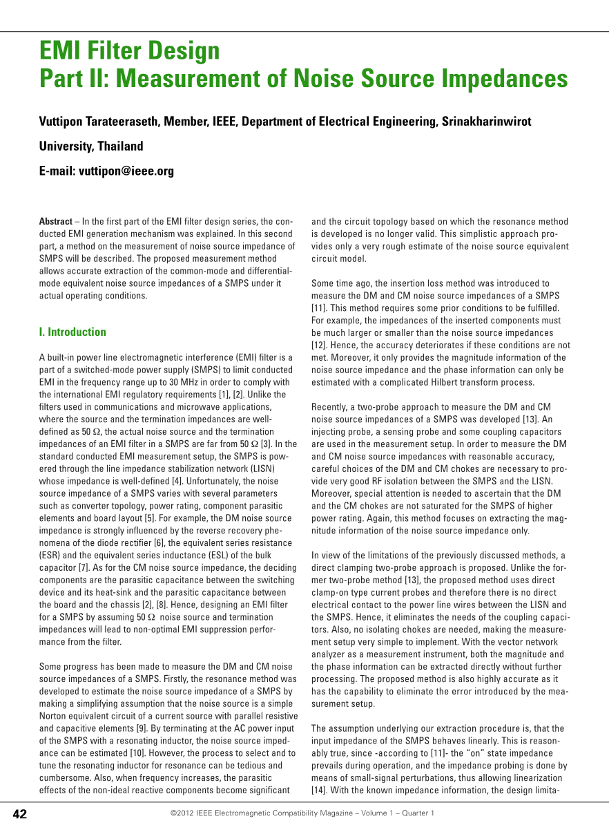 摘要 - 在EMI滤波器设计系列的第一部分中,解释了导体EMI产生机制。在这一部分,一种测量噪声源阻抗的方法SMPS将被描述。所提出的测量方法允许准确提取SMPS在实际工作条件下的共模和差模模式等效噪声源阻抗。