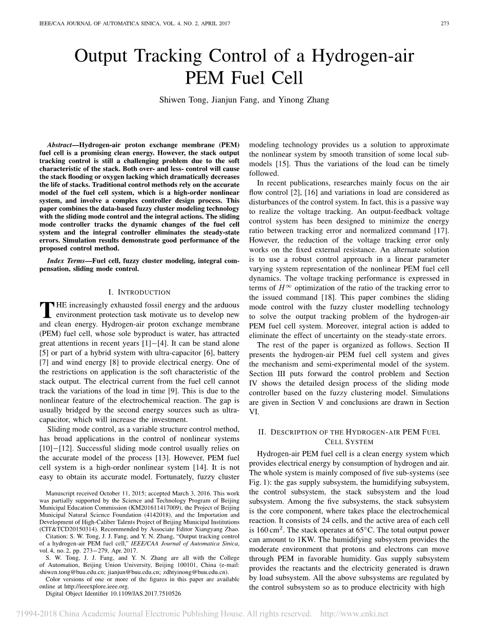 本论文建议了输出跟踪滑模控制算法,针对氢-空燃料电池的电堆输出电压控制,算法基于