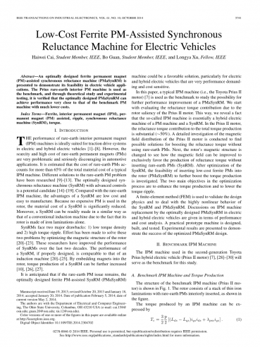 假设稀土永磁问题一直存在,优化设计的铁氧体永磁辅助同步电机(PMaSynRM)可能是一个很好的解决方案,特别是对于性能要求高、成本敏感的电动和混合动力电动汽车。