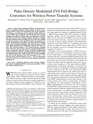 索引:最大效率点跟踪(MEPT)、脉冲密度调制(PDM)、无线功率传输(WPT)、零电压开关(ZV)。