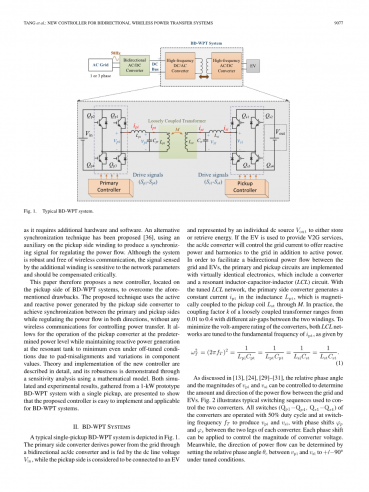 无线充电(WPT)作为一种传输电能的方式,近年来受到越来越多的关注,没有任何物理接触。与其他技术相比,WPT技术提供了许多好处,如高效率,电流隔离,高可靠性,尤其在恶劣环境中。目前,WPT广泛应用于工业应用领域,如自动导向车辆、生物医学植入物、人员移动应用、电动汽车充电等。[1]-[12]这些WPT系统中的大多数主要是为需要单向电源的应用程序开发流。然而,目前双向WPT (BD-WPT)系统作为车载到网格(V2G)系统[13]-[19]在ev的网格集成中也越来越受欢迎。V2G的概念允许使用电动汽车电池作为一种具有成本效益的替代能源存储,以缓解波动,促进基于可再生能源的网络的动态需求管理。因此,许多BD-WPT系统集中于磁设计、建模、补偿拓扑、控制策略或网格接口[20]-[31],已经被提出来展示它们的适用性。