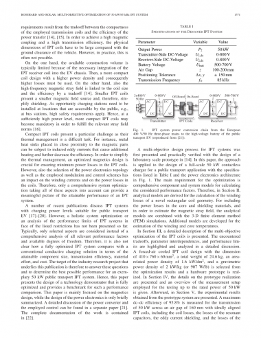 首次提出了 IPT 系统的多目标设计流程,并在 14 日的实验室规模样机设计中得到了实际验证。本文将该方法应用于公交应用全尺寸 50 kW 非接触式充电器的设计,其规格见表 1,电力电子结构见图 1,优化的主要要求是综合组件和系统模型,用于计算所考虑的性能因素。因此,在第二节中,推导了计算新型矩形线圈线圈线圈损耗的解析模型。为了考虑磁芯和屏蔽材料的功率损耗,并估算杂散磁场,将解析模型与三维有限元模拟相结合。开发了用于估计绕组和铁心温度的附加模型。