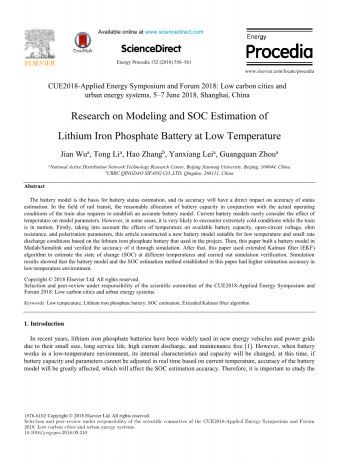 近年来,磷酸铁锂电池因其体积小,使用寿命长,电流放电和免维护等原因而被广泛应用于新能源汽车和电网中[1]。但是,当电池在低温环境下工作时,电池的容量不会受到影响。 ,这将影响SOC的准确性。因此,研究低温下的电池建模和SOC估计方法是很重要的。