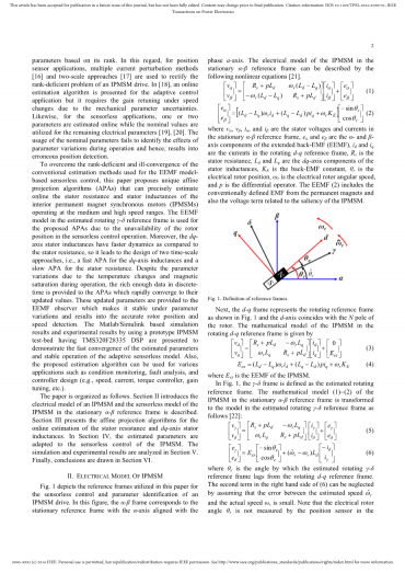 索引术语 - 仿射投影算法(APA),内部永磁同步电机(IPMSM),在线参数估计,无传感器控制,定子绕组电阻和电感。