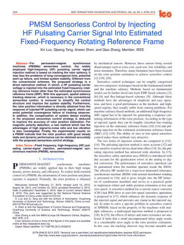 关键词——固定频率,高频脉冲载波信号注入,永磁同步电机,无传感器