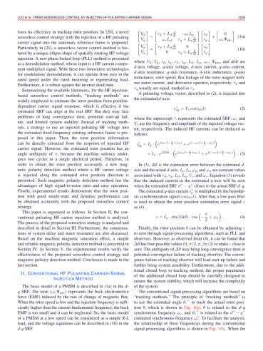 脉冲载波电压信号被注入到d*轴。将注入电压转化到d-q同步参考系i,e, (5)