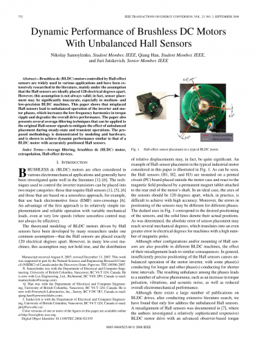 采用不平衡霍尔传感器无刷直流电动机的动态性能