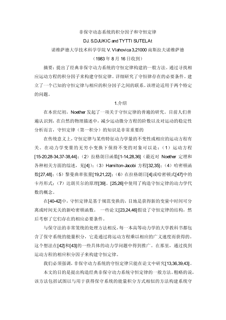 非完整系统的积分因子方法与守恒律外文翻译资料 2022-04-17 22:55:20 英语原文共 9 页,剩余内容已隐藏,支付完成后下载完整资料 英语译文共 10 页,剩余内容已隐藏,支付完成后下载完整资料资料编号:[466760],资料为PDF文档或Word文档,PDF文档可免费转换为Word 原文和译文剩余内容已隐藏,您需要先支付 30元 才能查看原文和译文全部内容!立即支付 发小红书推广免费获取该资料资格。点击链接进入获取推广文案即可: Ai一键组稿 | 降AI率 | 降重复率 | 论文一键排版 PREVIOUS NEXT 您可能感兴趣的文章 张家港高校土木实验楼设计外文翻译资料 拱坝-地基系统的地震稳定性评估外文翻译资料 不同载荷配置和边界条件下梁板系统在渐进倒塌下的张拉膜作用研究外文翻译资料 节理岩体强度折减模型及单轴压缩试验的近动力模拟外文翻译资料 Herglotz型时滞Hamilton系统的 Noether对称性与守恒量外文翻译资料 时间尺度上的时滞非保守系统的Noether定理外文翻译资料 时滞非完整系统的Noether定理外文翻译资料 受到小于欧拉临界力时纵向压杆的屈曲问题外文翻译资料 分析了等强度复合型材料弯曲问题的正确性外文翻译资料 自然火灾下钢结构的试验性能外文翻译资料