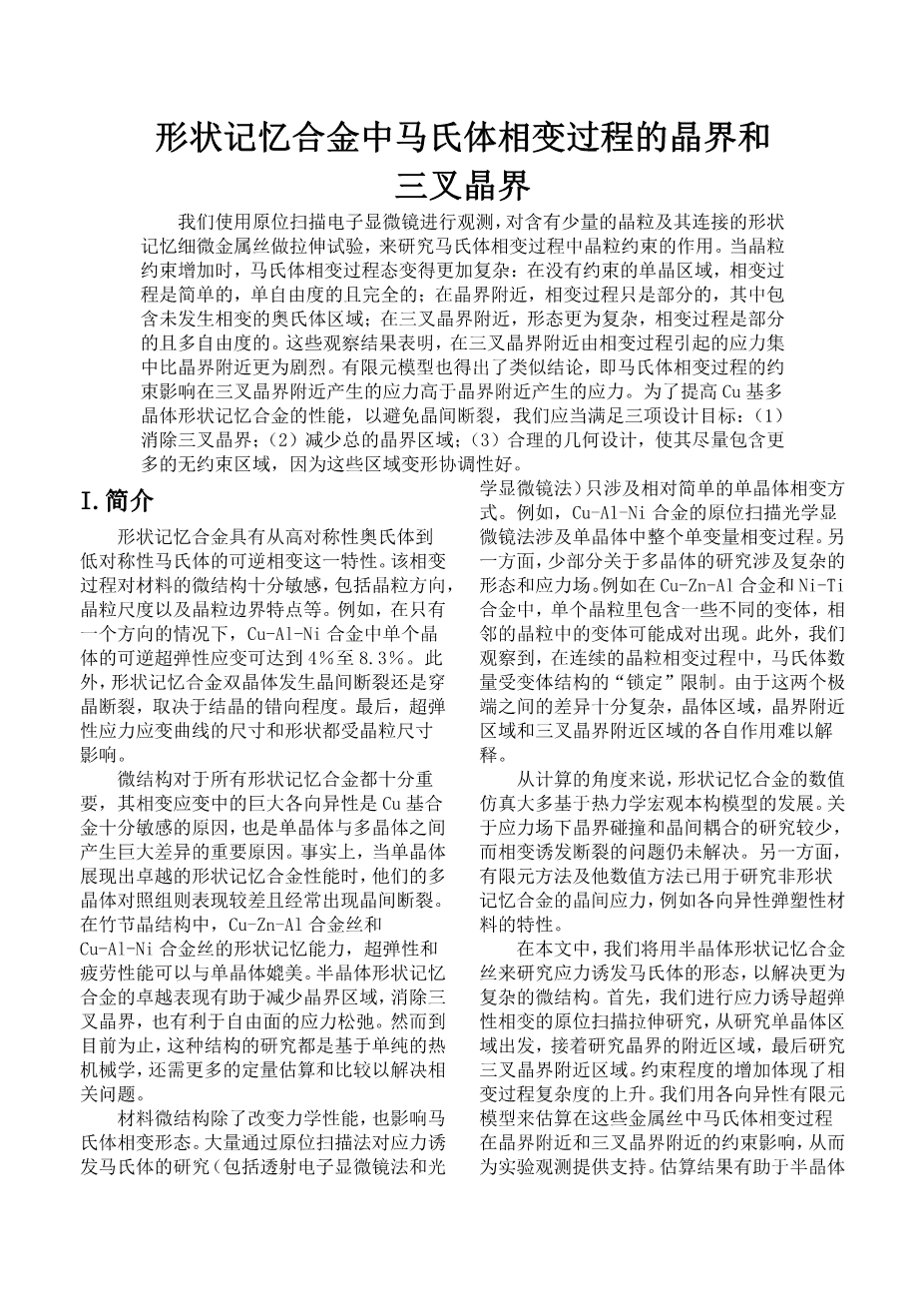 柱状晶Cu-Al-Mn形状记忆合金的拉伸原位金相分析外文翻译资料 2022-07-06 16:57:23 英语原文共 10 页,剩余内容已隐藏,支付完成后下载完整资料 英语原文共 12 页,剩余内容已隐藏,支付完成后下载完整资料资料编号:[10233],资料为PDF文档或Word文档,PDF文档可免费转换为Word 原文和译文剩余内容已隐藏,您需要先支付 30元 才能查看原文和译文全部内容!立即支付 发小红书推广免费获取该资料资格。点击链接进入获取推广文案即可: Ai一键组稿 | 降AI率 | 降重复率 | 论文一键排版 PREVIOUS NEXT 您可能感兴趣的文章 张家港高校土木实验楼设计外文翻译资料 拱坝-地基系统的地震稳定性评估外文翻译资料 不同载荷配置和边界条件下梁板系统在渐进倒塌下的张拉膜作用研究外文翻译资料 节理岩体强度折减模型及单轴压缩试验的近动力模拟外文翻译资料 Herglotz型时滞Hamilton系统的 Noether对称性与守恒量外文翻译资料 时间尺度上的时滞非保守系统的Noether定理外文翻译资料 时滞非完整系统的Noether定理外文翻译资料 受到小于欧拉临界力时纵向压杆的屈曲问题外文翻译资料 分析了等强度复合型材料弯曲问题的正确性外文翻译资料 自然火灾下钢结构的试验性能外文翻译资料