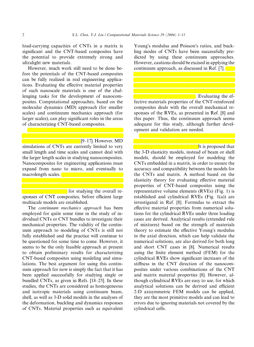 本文介绍的材料有两个用途。它的目的是提出一个圆柱坐标为基础的单元法(MOC)的公 式,或本质上是一个重新公式,在圆柱坐标系下,公认的 MOC。此外,目的是演示如何 能够很容易地使用该公式来精确模拟嵌入在聚合物基体或纤维增强聚合物基体中的碳纳米管(cnt)。